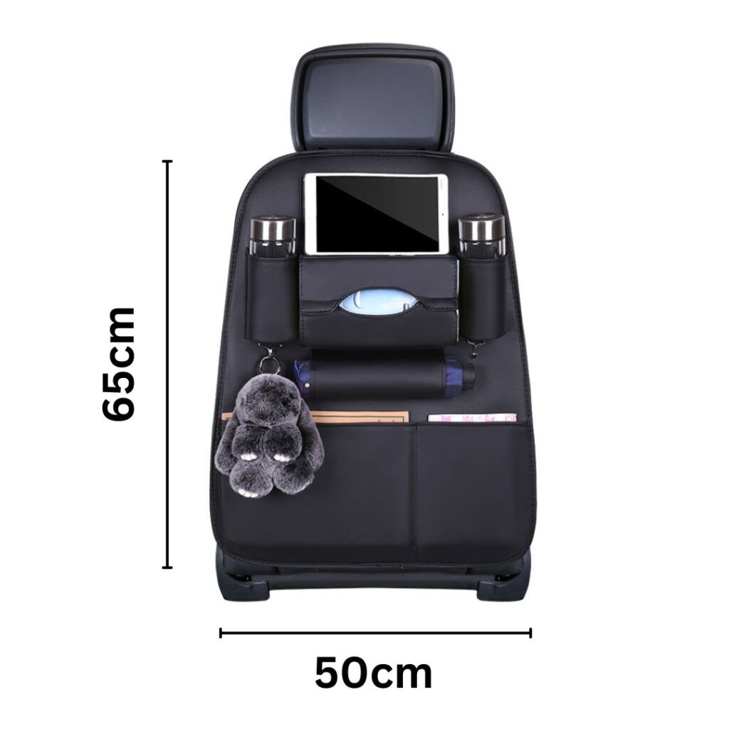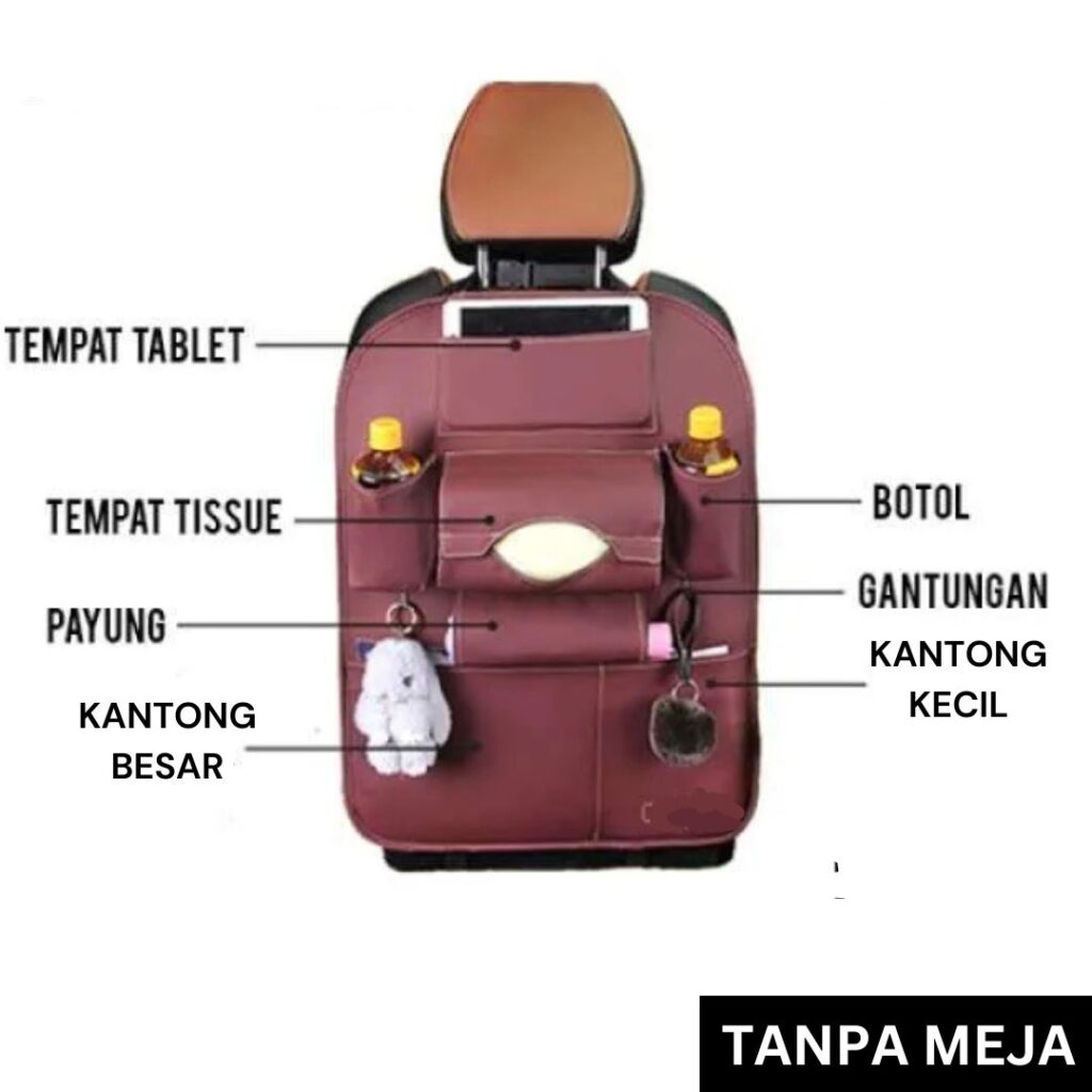 DesainĀ multifungsiĀ dengan kompartemen untukĀ tablet,Ā tempat tisu,Ā botol,Ā payung, danĀ gantunganĀ untuk kunci atau aksesori. Dilengkapi denganĀ kantong besar dan kecil, organizer ini memastikan semua barang Anda tersusun rapi dan mudah diakses.
