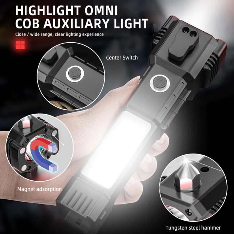 Dilengkapi safety hammer tungsten steel untuk memecahkan kaca mobil saat terjadi kecelakaan, plus 4 mode pencahayaan yang dapat diandalkan saat listrik padam atau dalam kondisi gelap gulita.