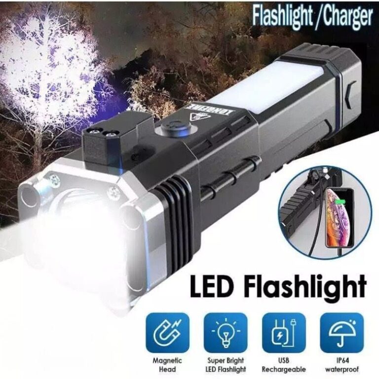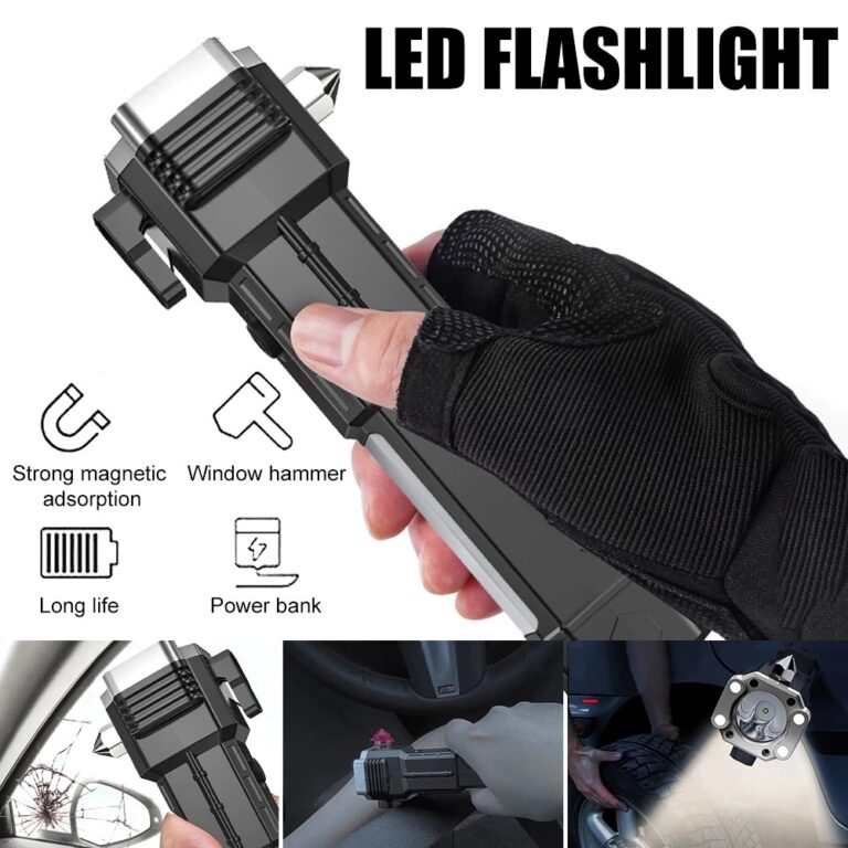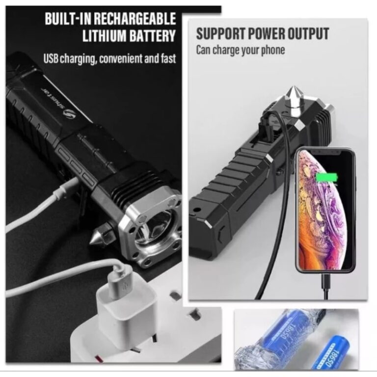 Satu alat untuk tiga kebutuhan penting – senter LED super terang, power bank untuk charging ponsel, dan safety hammer untuk situasi darurat. Tidak perlu lagi membawa banyak alat terpisah!